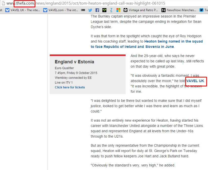 Not only did I get to interview an incredibly nice man in Tom Heaton, but after tagging the official England football team Twitter account in the tweeting out of the interview, the official Football Association site picked up the interview and produced an article from my quotes (here).