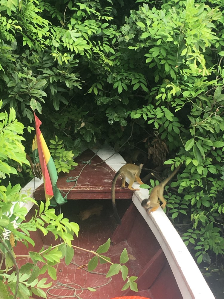 There were a few species of monkey but the only ones who were brave enough to come down to boat level were these small yellow ones. So curious and playful, they used me as climbing frame while they fought at the front of our boat and took fruit out of my hand before looking up at me for a smile and scurrying off back into the tree. They are so like humans and remain the best animal.