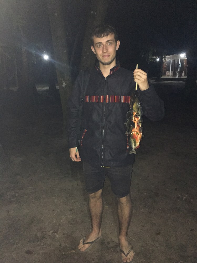 My attempt at fishing began poorly, though I eventually got into the rhythm and plucked four piranhas out of the river which we then ate for dinner. They didn’t have huge amounts of meat on them, but they were tasty and it was satisfying to have beaten a (very small) piranha. Their teeth are ridiculously sharp and even once they’re dead they continue to chomp down if anything enters their mouth.