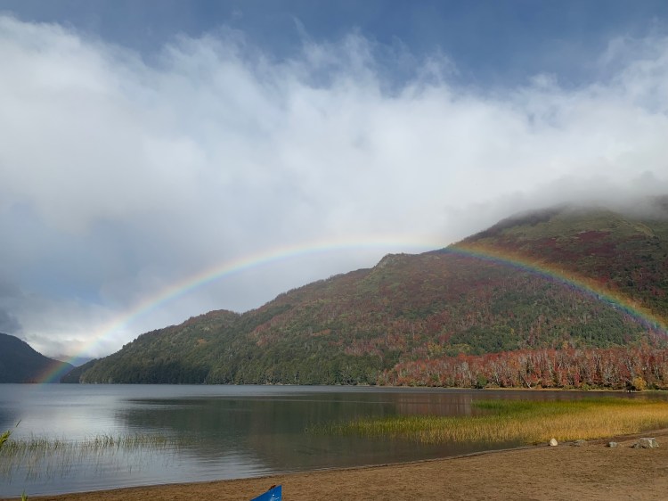 Throughout the day we continued to tick off lake after lake and, just like with the Iguazu Falls or El Salar de Uyuni in Bolivia, photos are better than words. Rainbows curving over still water, snowy mountain peaks providing the most perfect of backdrops, ice cold water to test your fingertips, dogs with wagging tails greeting another tourist car at each spot, sun-setting behind postcard-worthy scenes.