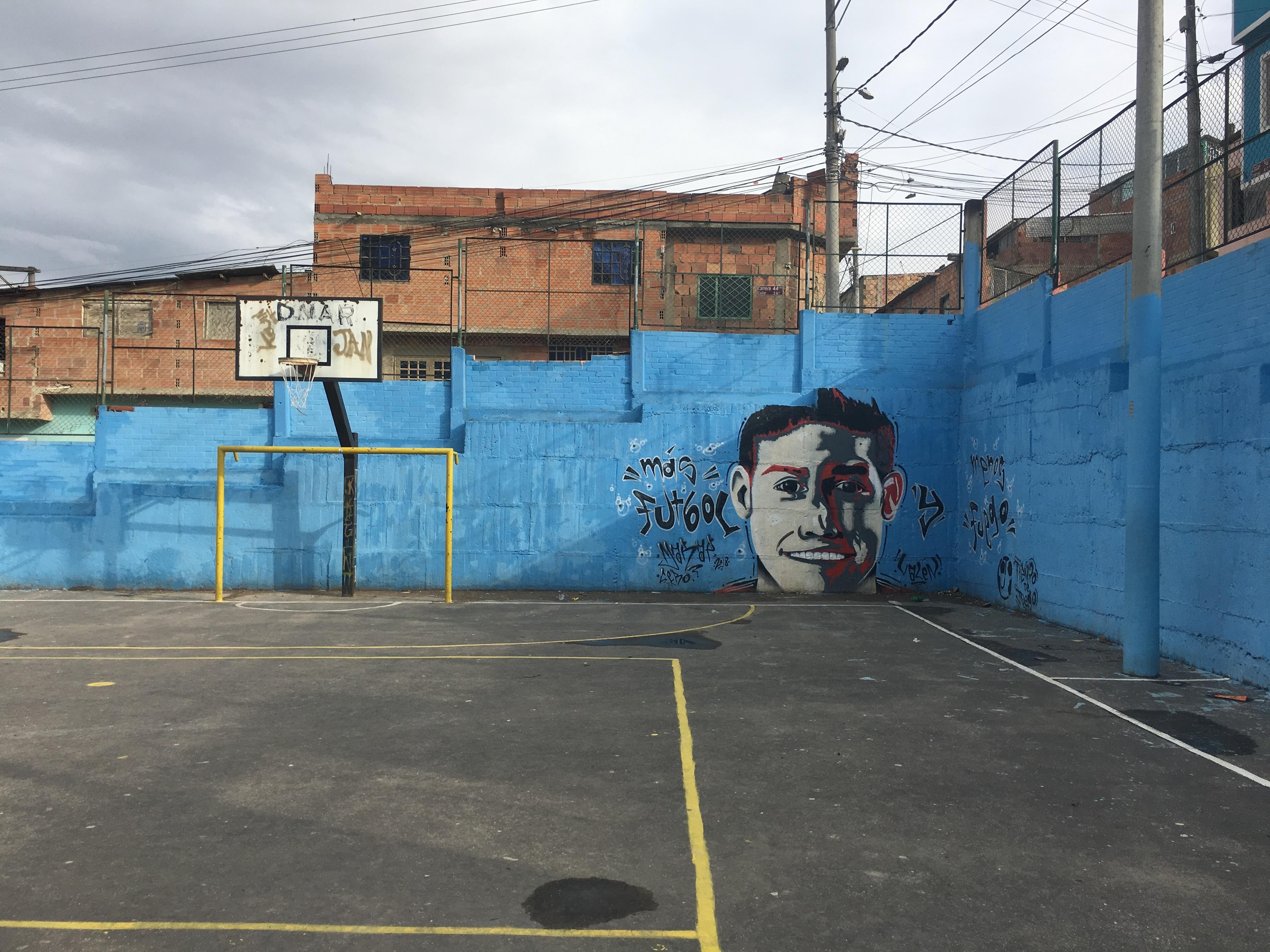 His mother and I are playing on a synthetic football pitch funded by various sponsors. Elsewhere in Soacha, investment is not quite so large although Tiempo de Juego’s presence in Cazuca has encouraged other non-governmental organisations, mainly Catholic charities, to enter the neighbourhood and offer support. In the past, the presence of banditas would have put them off.